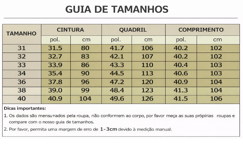 Caro cliente, para ter a certeza de obter o tamanho mais adequado, dê uma olhada em nossa tabela de tamanhos antes de comprar. Muito obrigado!